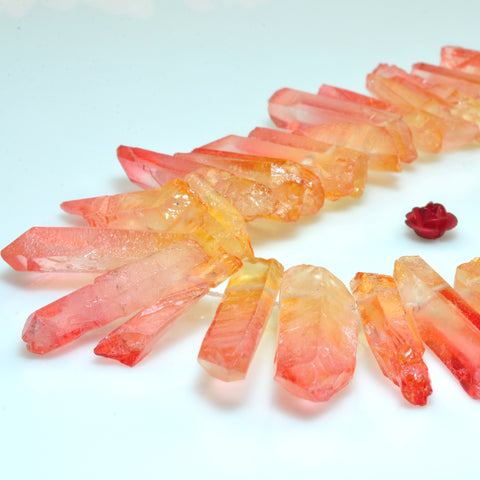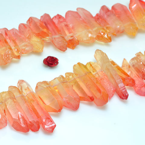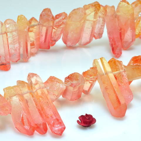 Quartz crystal points rough crystal top drilled stick spike beads orange red 15 inches