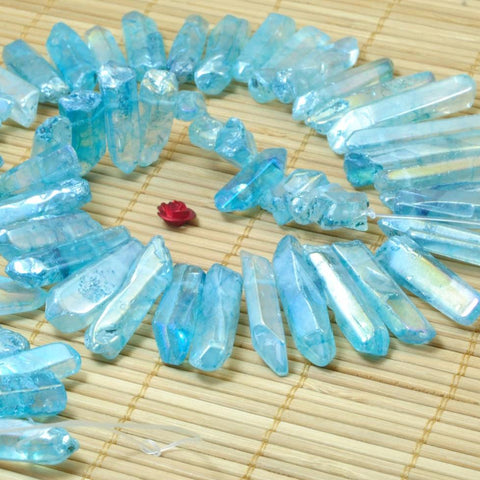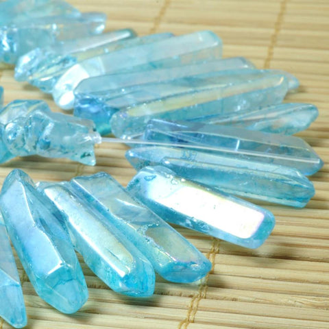 15 inches polished titanium coated mystic drilled crystal,quartz points,smooth dagger gemstone ,spike tower beads, blue color