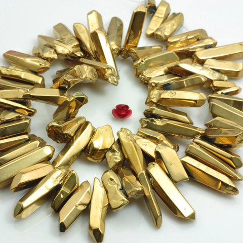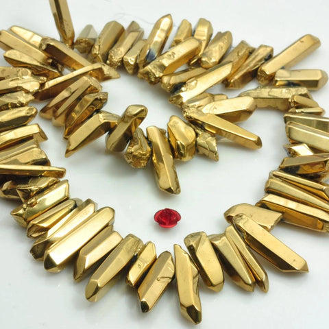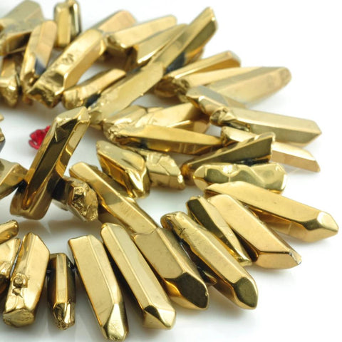 15 inches polished titanium coated mystic drilled crystal,quartz points,smooth gemstone, pendant beads, gold color