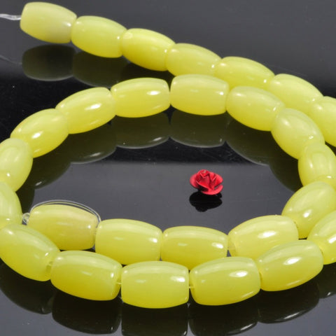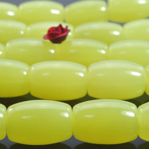 Natural lemon yellow jade smooth rice barrel beads in 10x14mm