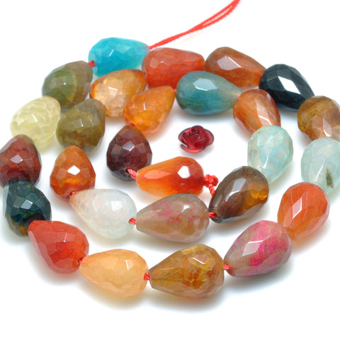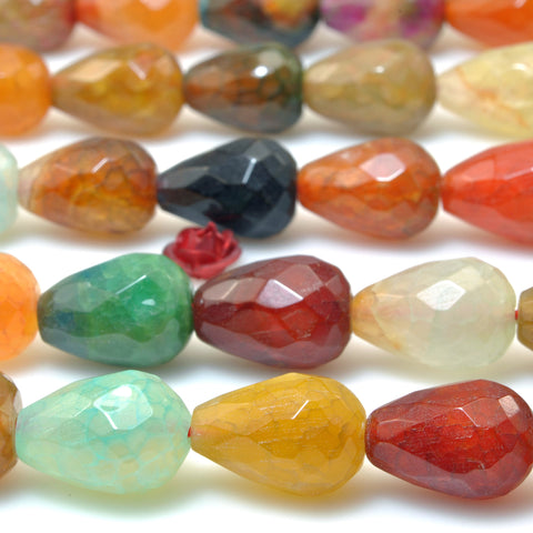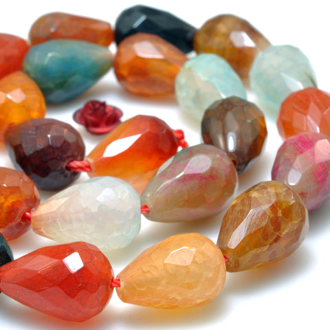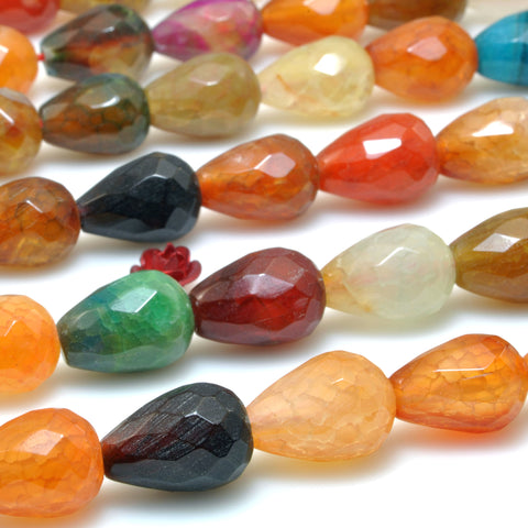 Multicolor fire agate stone faceted teardrop beads wholesale gemstone for jewelry making diy bracelet