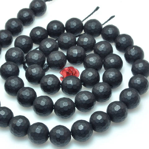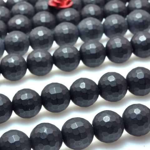 Black onyx faceted and matte round beads wholesale gemstone jewelry making 15"