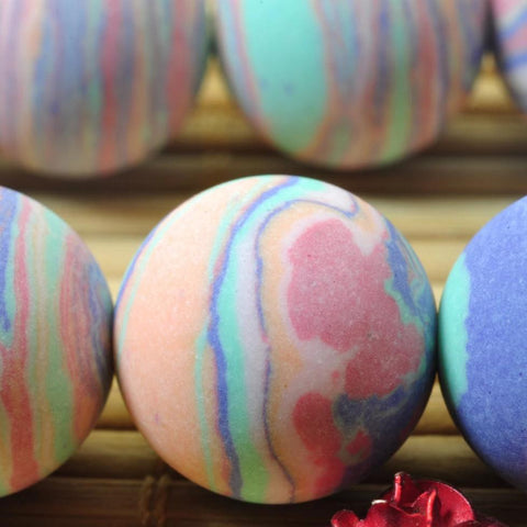 32 pcs of pink malachite matte synthetic round beads in 12mm
