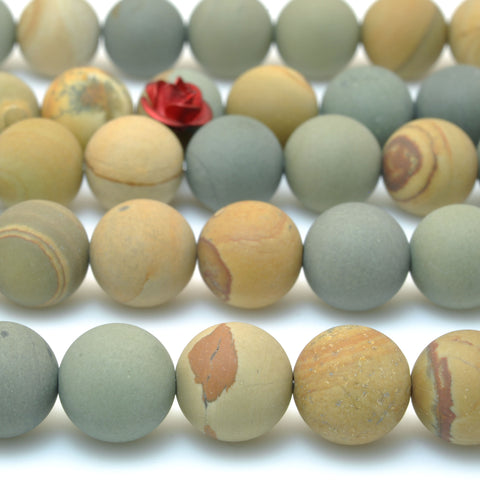 Natural picture jasper matte round beads wholesale gemstone jewelry making 15''