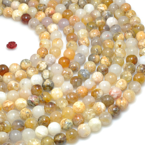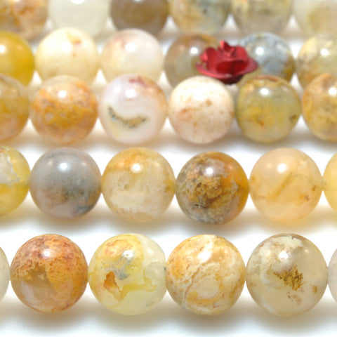 Natural regency rose plume agate smooth round beads wholesale yellow gemstone jewelry making 8mm