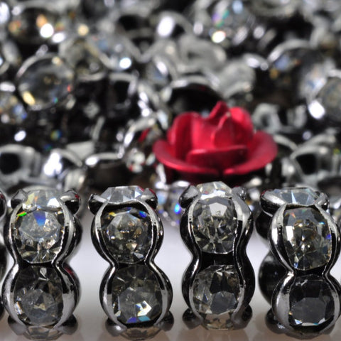 50 pcs of gun black rhinestone flower beads in 8mm diameter x 3mm thick