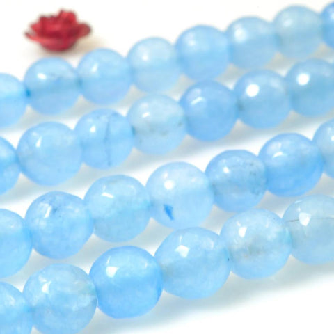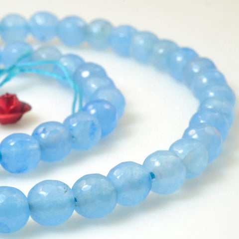 62 pcs of natural dyed blue jade faceted round beads in 6mm