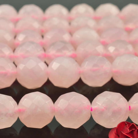 Rose quartz faceted round loose beads wholesale gemstone jewelry making 15"