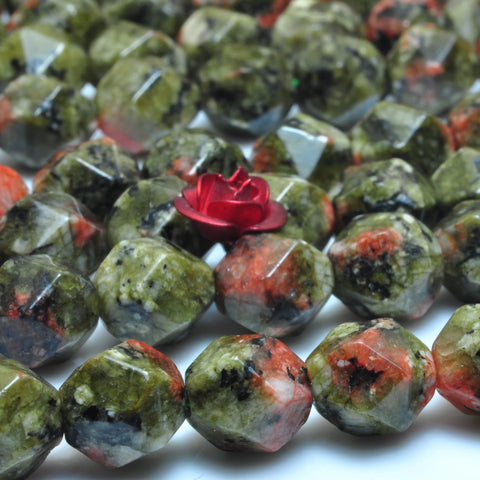 Alabaster stone star cut faceted nugget loose beads green red gemstone wholesale jewelry making 14.5"