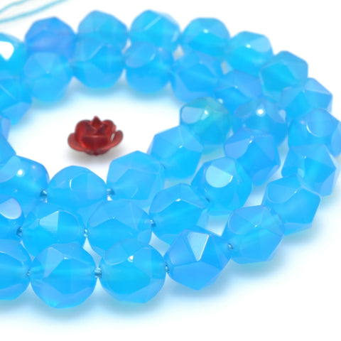 Blue agate star cut faceted nugget loose beads gemstone wholesale jewelry making bracelet diy stuff