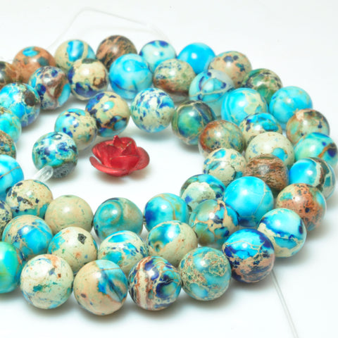 Blue imperial jasper smooth round loose beads impression jasper gemstone wholesale jewelry making bracelet diy stuff