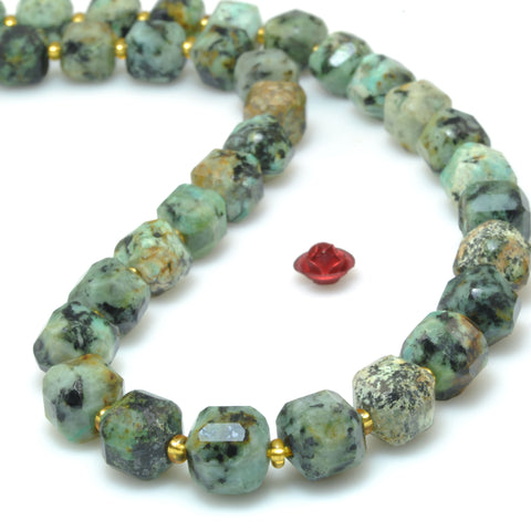 Natural african turquoise faceted cube loose beads green stone wholesale gemstone for jewelry making bracelet diy
