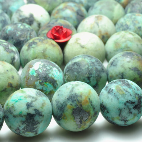 Natural african turquoise matte round loose beads green gemstones wholesale jewelry making 6mm-12mm 15"