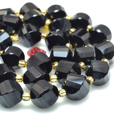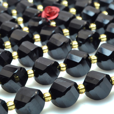 Natural black onyx faceted twist loose beads gemstone wholesale jewelry making bracelet necklace diy