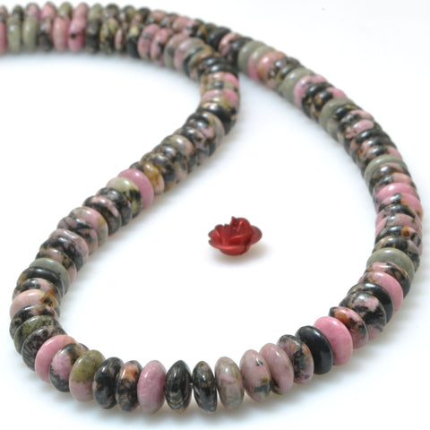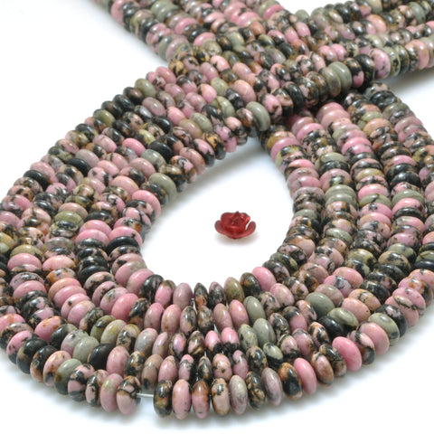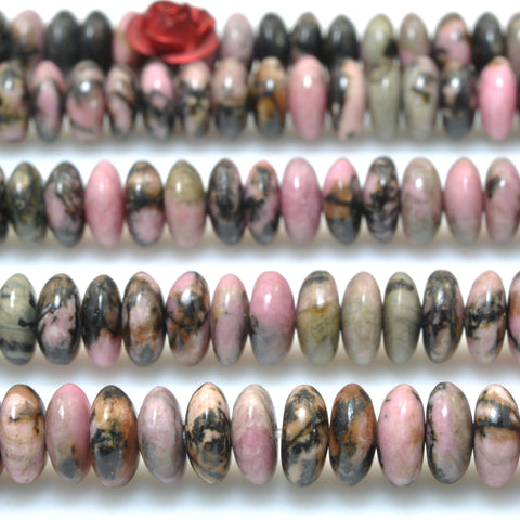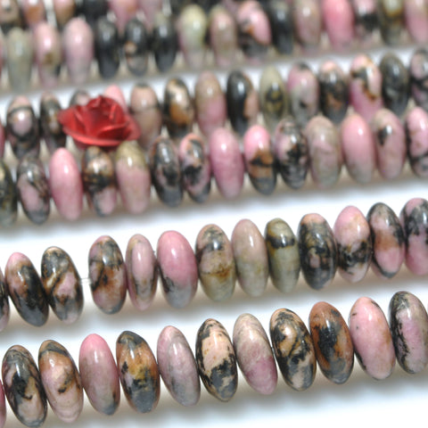 Natural black pink rhodonite stone smooth disc rondelle beads loose gemstones for jewelry making diy bracelet necklace