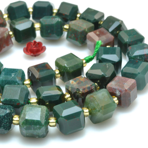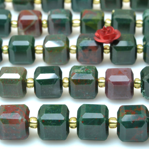 Natural bloodstone faceted cube beads dark green heliotrope stone wholesale gemstone for jewelry making diy