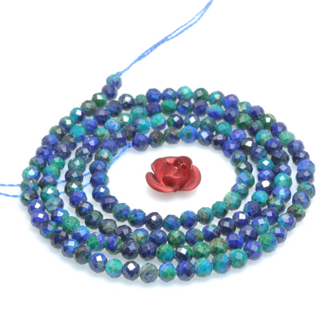 Natural chrysocolla azurite stone faceted round loose beads wholesale gemstones for jewelry making diy bracelet necklace