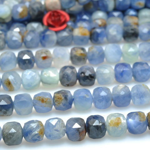 Natural kyanite faceted cube loose beads blue gemstone wholesale for jewelry making bracelet diy stuff