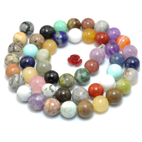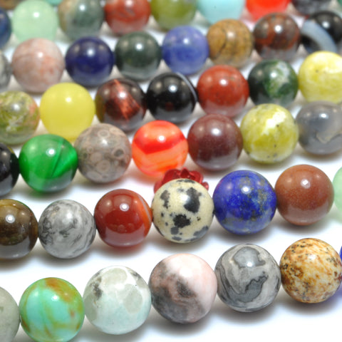 Natural mix gemstone multicolor stone smooth round loose beads wholesale for jewelry making diy