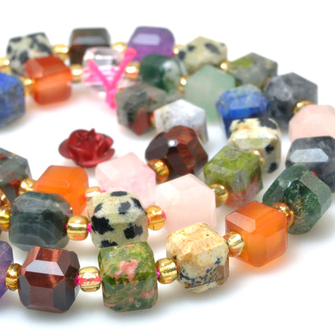 Natural mixed stones faceted cube beads multicolor jasper wholesale gemstone for jewelry diy making bracelet necklace
