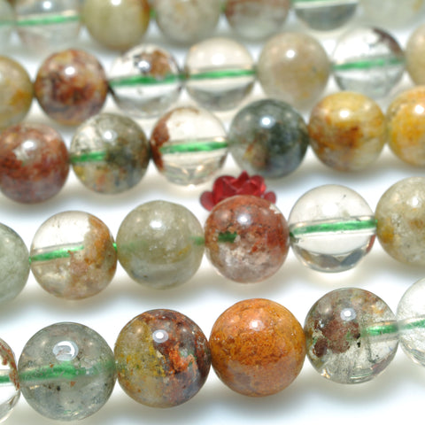 Natural multicolor phantom quartz smooth round beads wholesale gemstone loose lodolite stone jewelry making bracelet diy