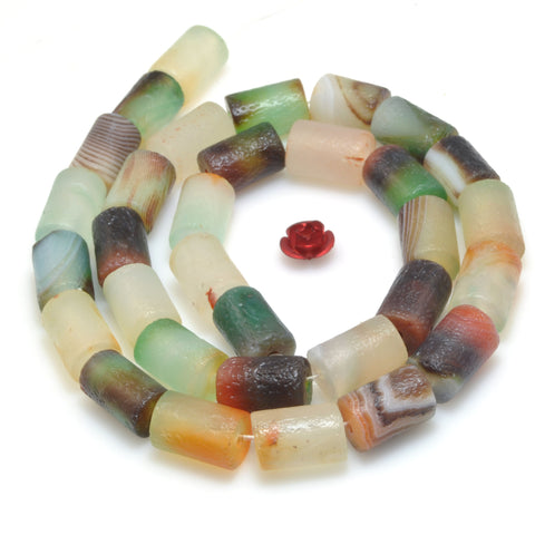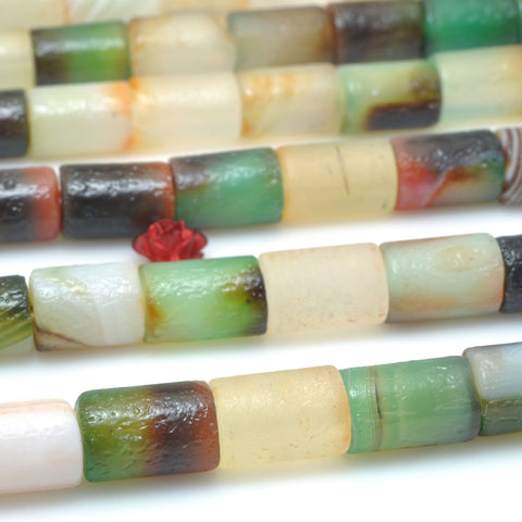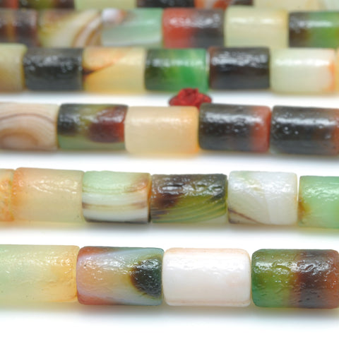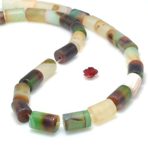 Natural peacock agate matte tube beads green red stone wholesale loose gemstone for jewelry making diy bracelet