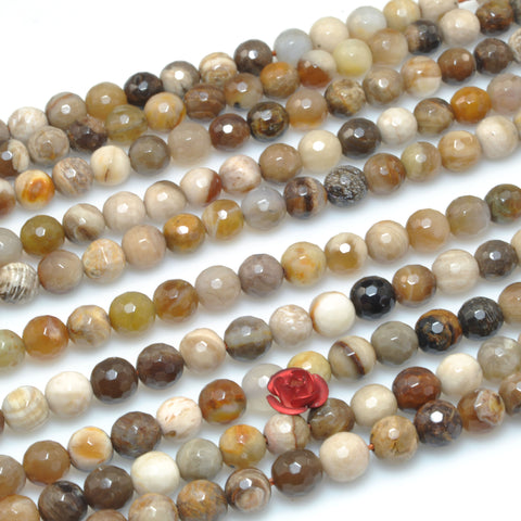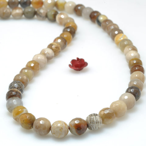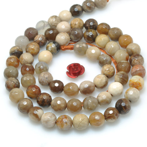 Natural petrified wood jasper stone faceted round beads gemstone wholesale for jewelry making bracelets necklace diy