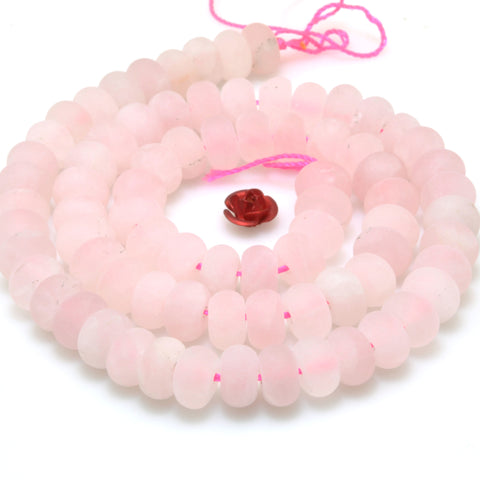Natural rose quartz matte rondelle beads pink quartz stone loose gemstones wholesale for jewelry making diy bracelet necklace