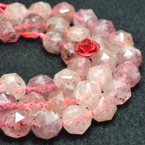Natural strawberry quartz diamond cut faceted loose round beads wholesale gemstone jewelry making bracelet diy stuff