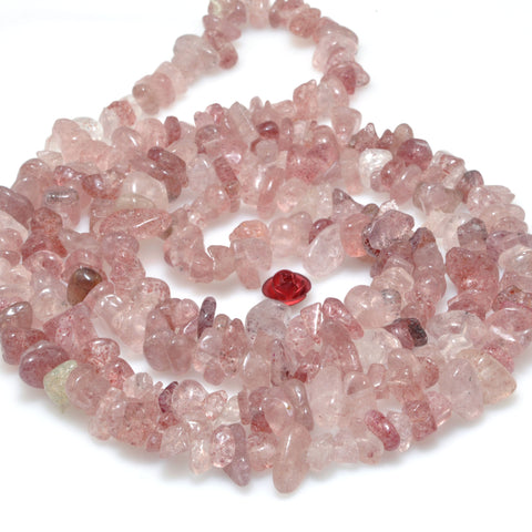 Natural strawberry quartz smooth chips beads wholesale loose gemstones for jewelry making diy bracelet necklace