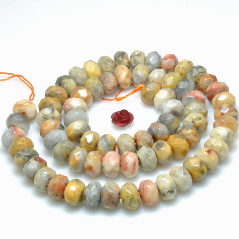 Natural yellow crazy lace agate faceted rondelle loose beads gemstone wholesale for jewelry making bracelet