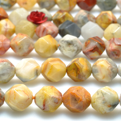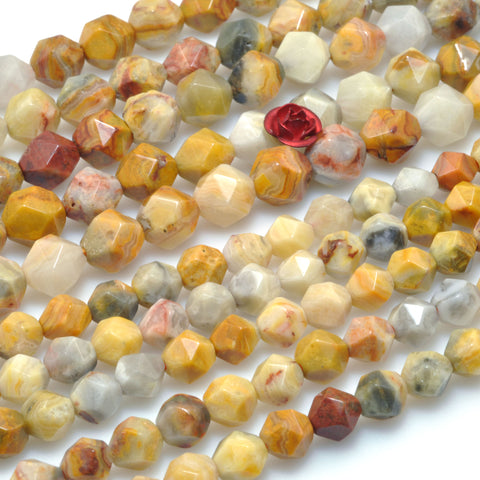 Natural yellow crazy lace agate star cut faceted nugget beads wholesale gemstone jewelry bracelet diy stuff