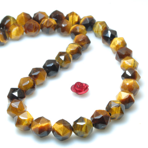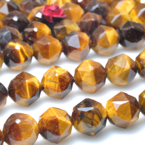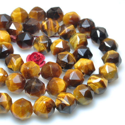 Natural yellow tiger eye diamond cut faceted nugget beads gemstone wholesale jewelry making bracelet necklace diy
