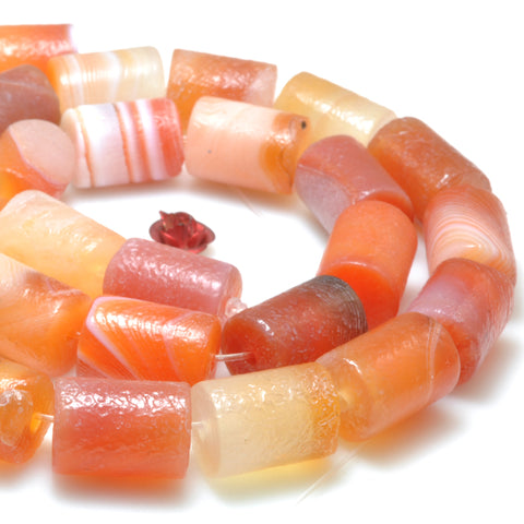 Orange agate frosted matte tube loose beads gemstone wholesale jewelry making bracecet necklace diy