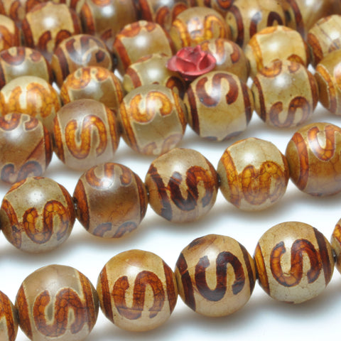 Tibetan agate s character smooth round beads loose gemstone wholesale jewelry making bracelet diy stuff