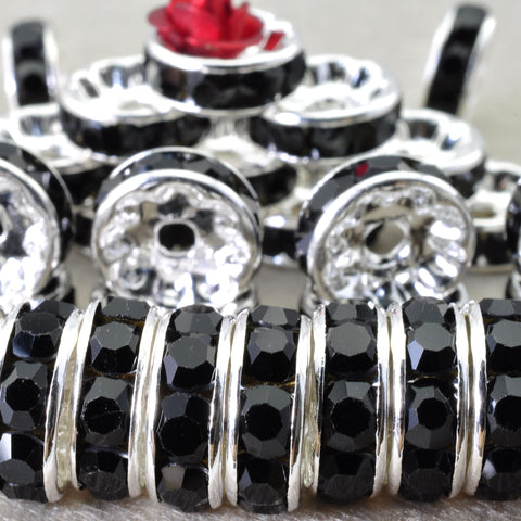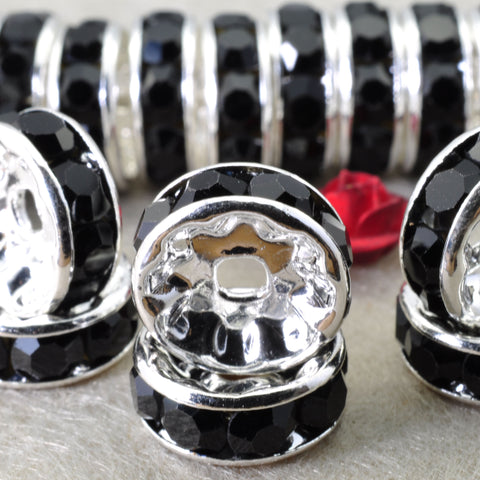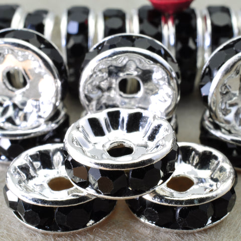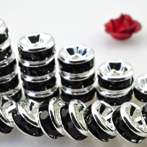 100pcs silver plated black crystal rhinestone rondelle spacer beads wholesale findings jewelry-straight edge