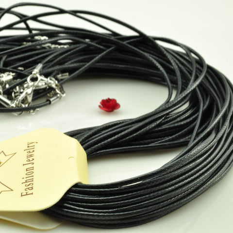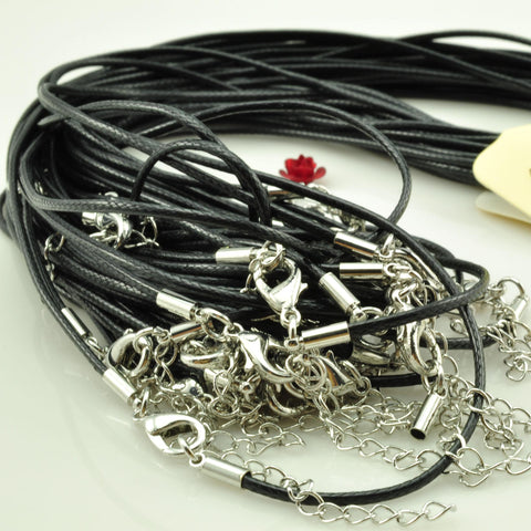 10 necklaces-18 inch 2mm black faux leather necklace cord with lobster clasp extended chain jewelry findings