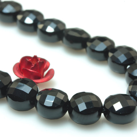 Black onyx micro faceted coin loose beads wholesale gemstone jewelry 15"