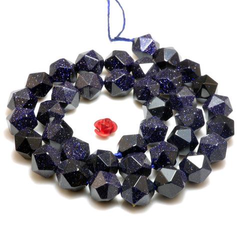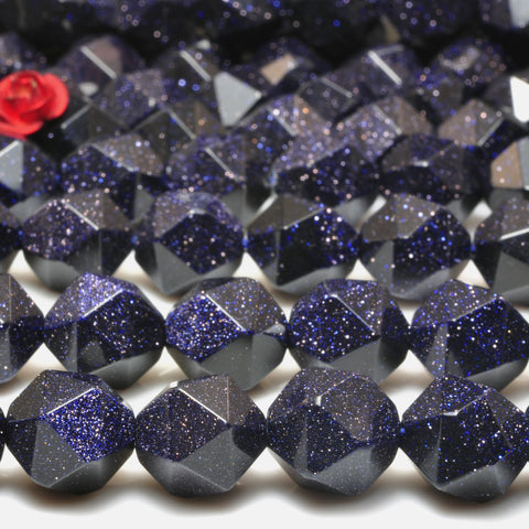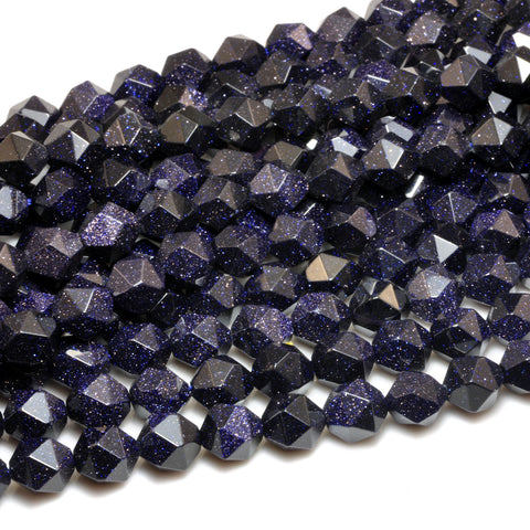 Blue sandstone goldstone star cut faceted nugget beads wholesale gemstone 15"