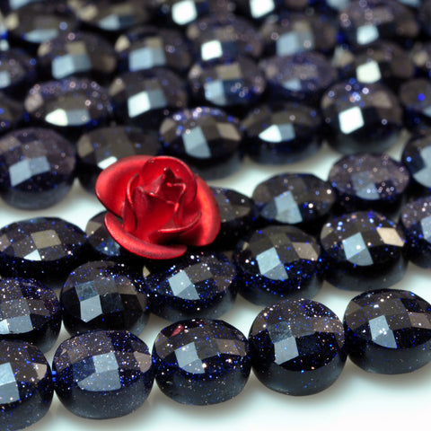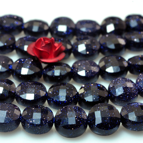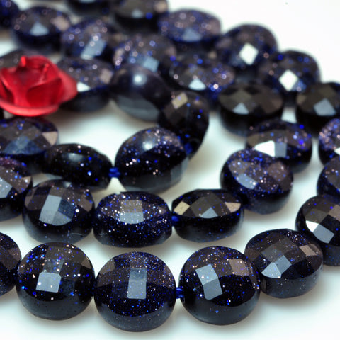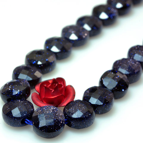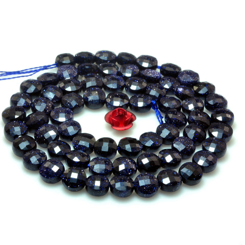 Blue sandstone micro faceted coin loose beads wholesale gemstone jewelry making 6mm