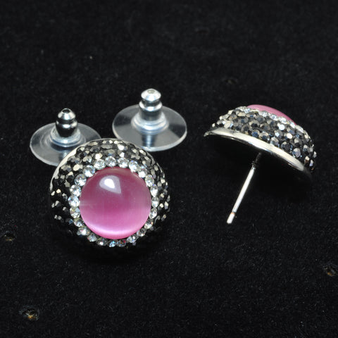 Earrings cat eye bead rhinestone crystal pave stud earrings coin shape whoelesale fashion jewelry