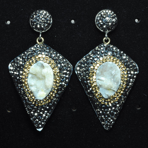Earrings druzy quartz pave rhinestone crystal cz bead stud dangle earrings cone shape jewelry