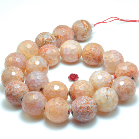 Fire agate crackle agate faceted round beads wholesale gemstone jewelry 18mm 15"