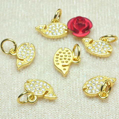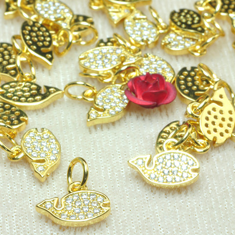 Fish charms gold plated cz pave rhinestone copper spacer pendant beads wholesale findings