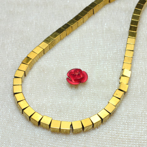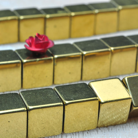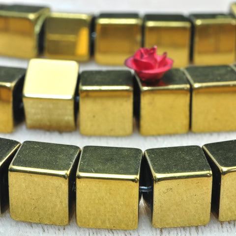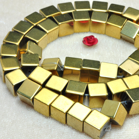 Gold hematite smooth square cube beads yellow stone wholesale jewelry 15"