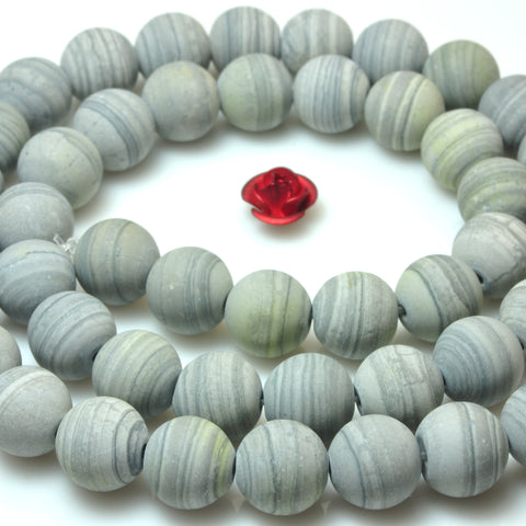 Gray banded jasper matte round beads gemstone 6-10mm 15"