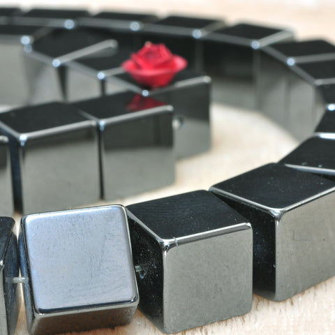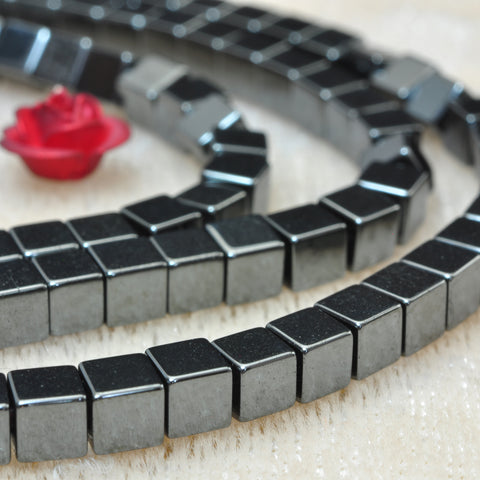 Gray hematite smooth square cube beads gun black stone wholesale jewelry 15"