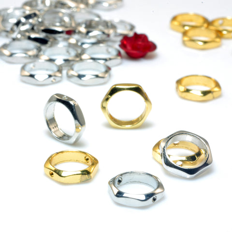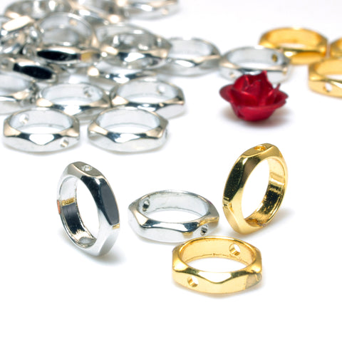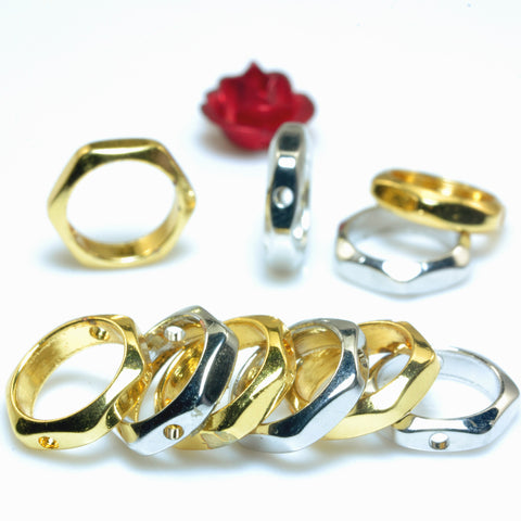 Hexagonal ring bead frame electroplated two holes copper spacer connector beads wholesale findings supplies