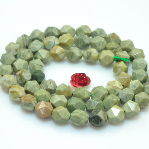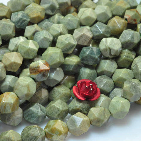 Natural green silver leaf jasper star cut faceted nugget beads genstone wholesale jewelry making bracelet necklace diy