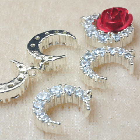 Moon charms antique silver plated cz pave rhinestone copper spacer pendant beads wholesale findings